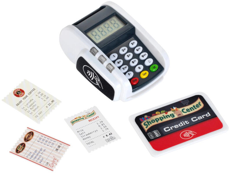 Így fog zajlani a fizetés a jövőben – kártyákkal, modern terminállal és rengeteg szórakozással. A fizetés hitelkártyával történik, amely a terminálba helyezve a vásárlás valódi hangjait adja ki, vagy – húzás vagy érintés nélkül – érintésmentes fizetési funkcióval: egyszerűen beírja az összeget, megerősíti, a hitelkártyát a terminál oldalához tartja, beüti a PIN-kódot, megerősíti, és a fizetés sikeres. Így több idő marad kellemes beszélgetésekre az ügyfelekkel az időjárásról, az áruról és a közérzetről, ami fejleszti a kis pénztárosok képzelőerejét és kommunikációs készségeit.